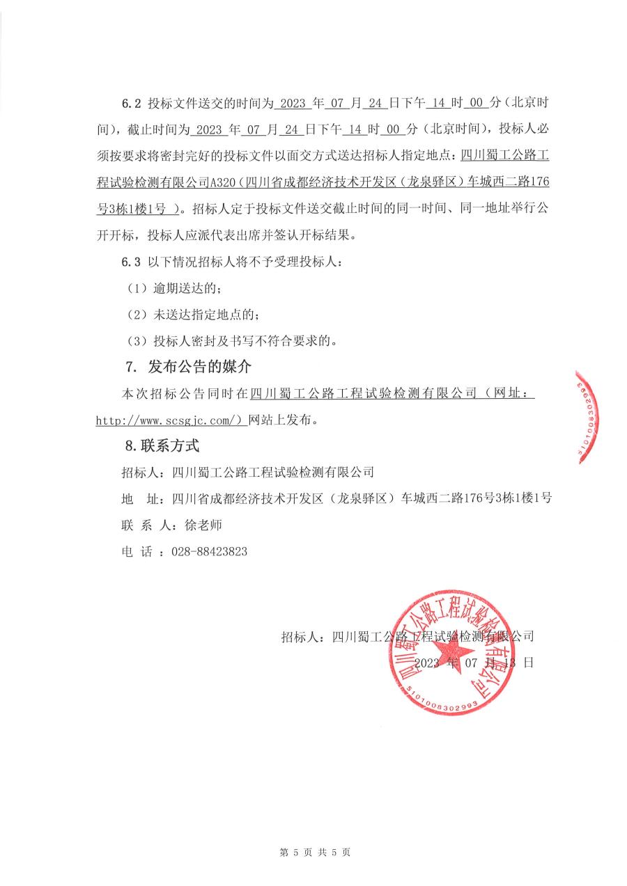 四川蜀工公路工程试验检测有限公司2023-2025年度桥梁水下检测协作队伍招标公告